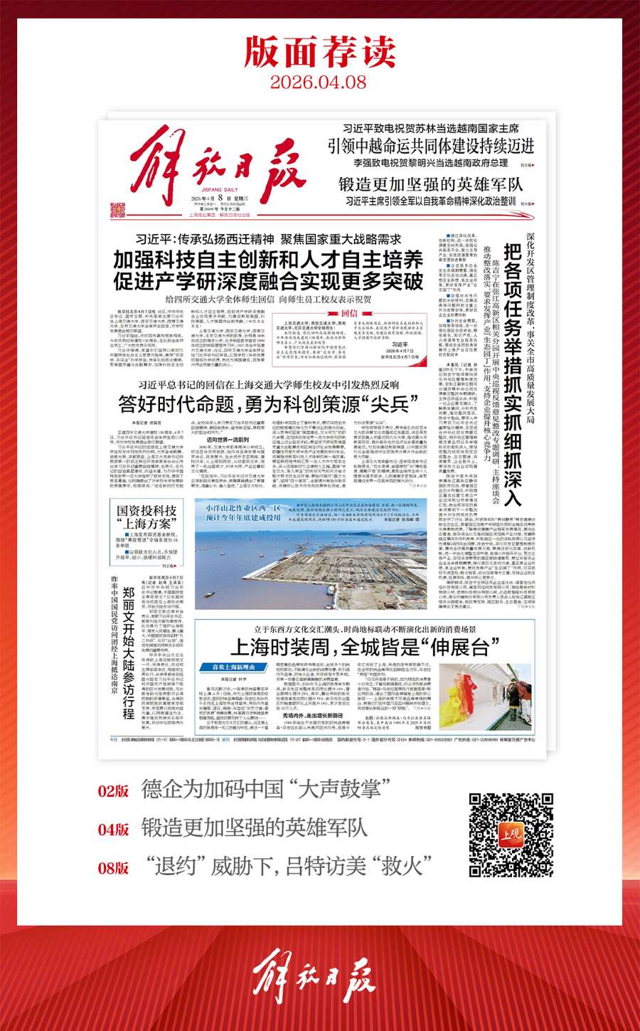 早上好!上不雅新闻『早读』来啦!今天是2026年4月8日星期三,农历二月廿一。