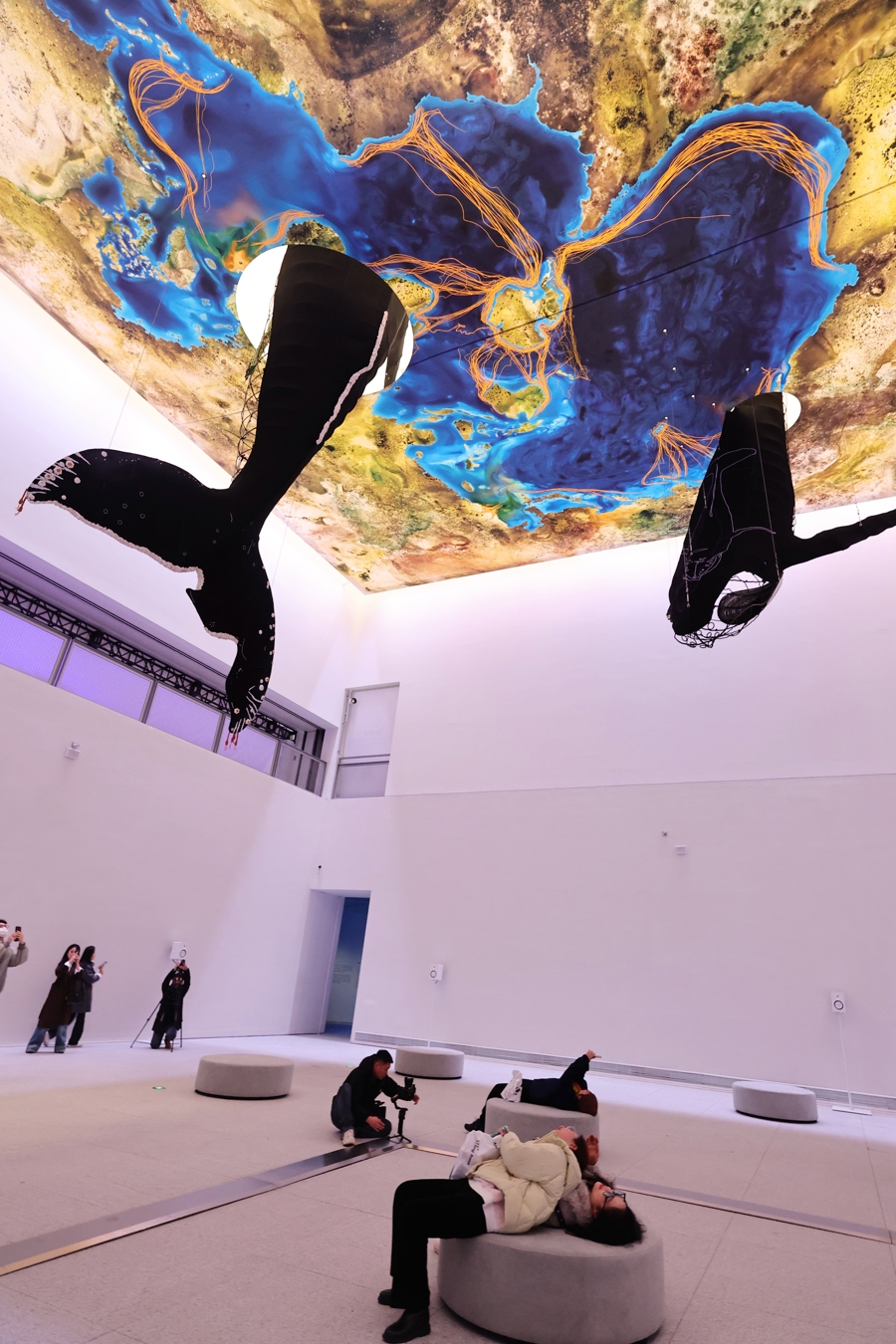 艺术家卡罗莱娜为浦东好意思术馆中央展厅“量身定制”巨型艺术装配。卡罗莱娜先容,鲸鱼装配收复了两端果然存在的座头鲸“巴特曼”与“阿莉亚”,“巴特曼当今至少40岁了,阿莉亚出身于2022年。”