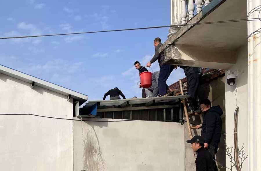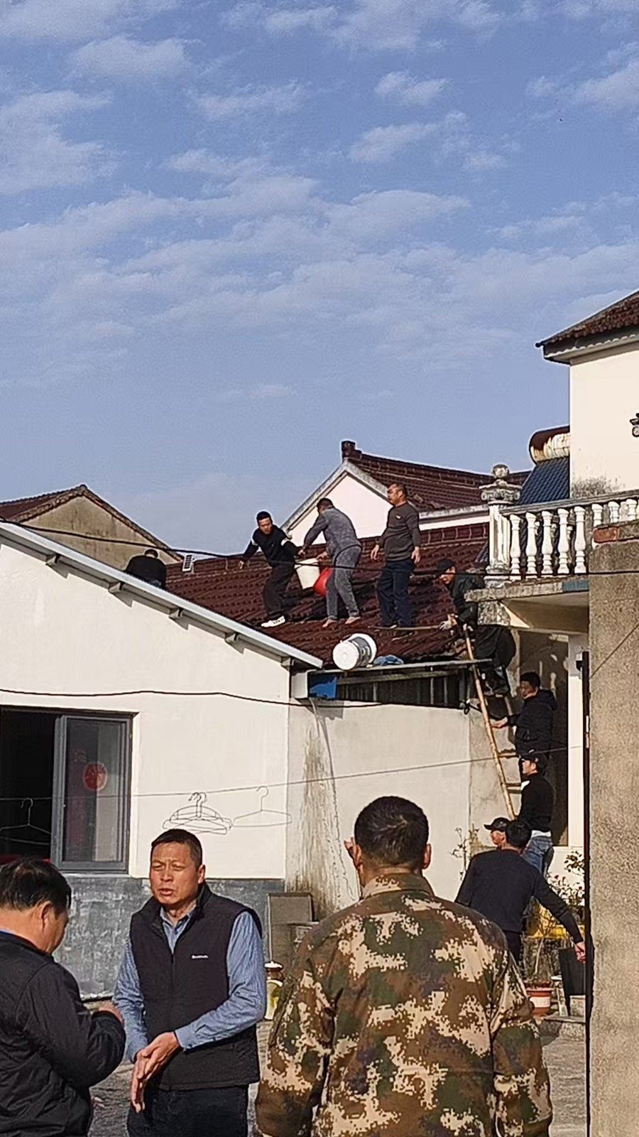 这时,宋子文发现,之前腾空而起的火焰早已引燃瓦房房顶下方的木条,产生阴燃。他又一派片揭开瓦片,浇水熄灭,衰弱复燃。