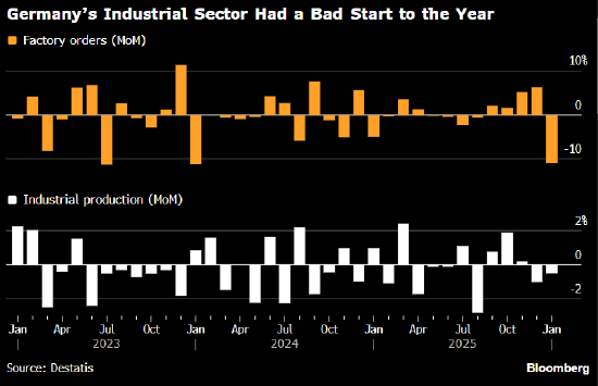 德国工业产值和工场订单年头双双下滑,打击了商场对经济快速复苏的渴望,况且伊朗构兵也将带来更多不利影响。