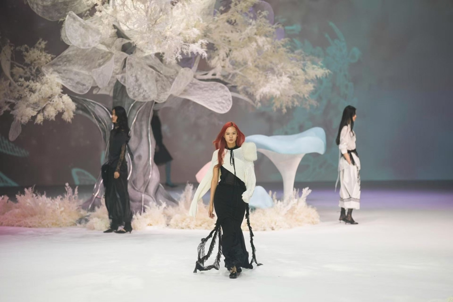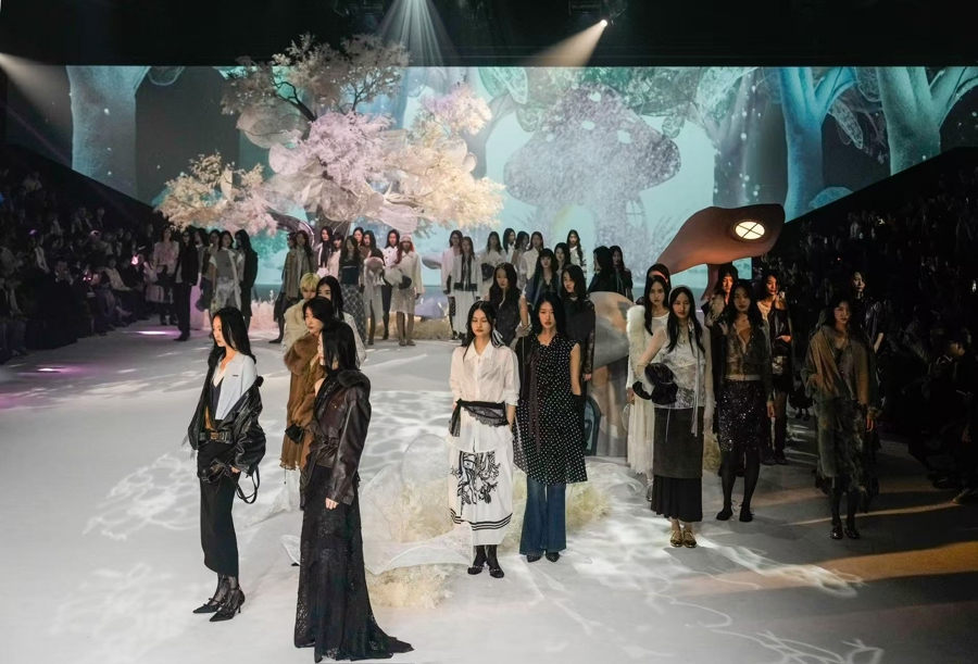 从多元审好意思的个性抒发,到传统文化在现代语境下的焕新演绎,本季秀场的灵感很是丰沛。原土品牌或化用阴阳共生的中国玄学,或演绎楚辞大肆的青铜遗韵,或将五音疗愈融入时装谈话,向寰宇讲好中国故事、传播中国声息。还有北欧童话的解放轻微、意大利哥特拓荒的私密气味、左岸精神的温热大肆,都卓著时空,通过作品传递给在场的不雅秀者。不雅众还能看到工艺方面的奇念念妙想,从非遗织锦到3D打印、激光切割,策画师们以“可一稔的艺术”为理念,在手工温度与期间调动间探索着精妙的均衡。