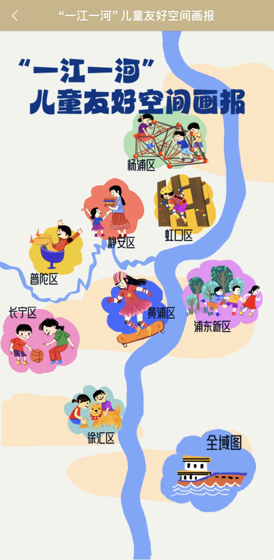 2023年,相干部门还尝试制作发布了第一套“一江一河”大型儿童友好才调的总图,收到邃密的反响着力,2024年“六一”前夜,又完成了中心城区8个区段的分段图,对分裂在各区段的儿童友好才调解处所作念了系统梳理和重心标注,并上线随申办“儿童友好专区”,为家长们在开展亲子看成时带来便利。