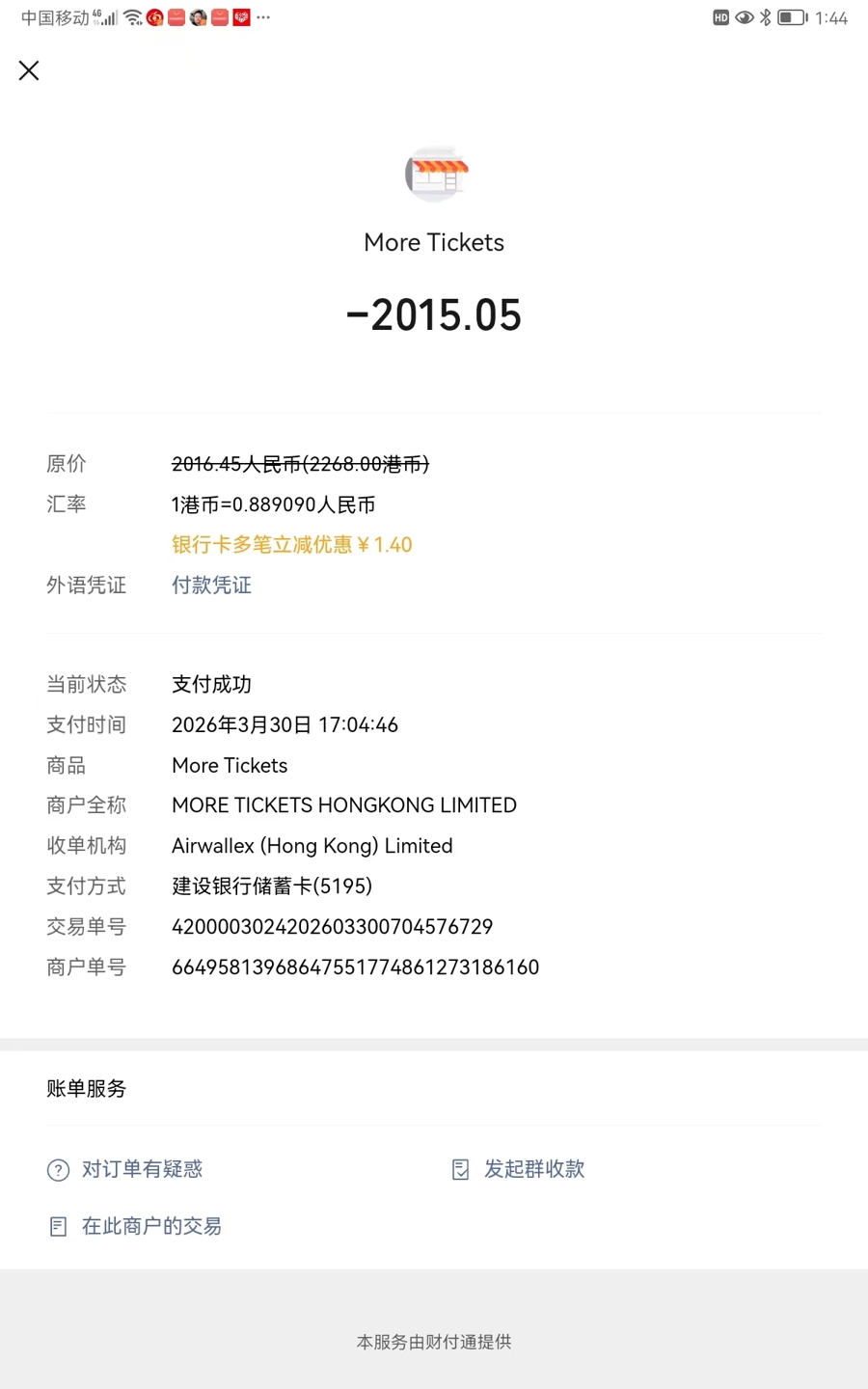 而万万没思到的是,一笔瞬息冒出来的订单,让这个贫窭家庭又堕入一场困局。据欧阳先生讲述,闲居男儿卧床在家,仅有两根小拇指不错动掸,我方给男儿准备了一个平板电脑用作消遣,男儿的随意相似也靠在平板电脑上打字。3月30日晚上5点多,我方瞬息发现男儿的微信上有一条2000多元的支付纪录,大惊之下,速即点进去稽查,发现是男儿在上海知名票务平台“摩天轮”上购买了一张4月9日邓紫棋的中国台北站演唱会票。“男儿昔日就心爱听邓紫棋的歌,忖度是看到了她的演唱会,不严防点进去的。”欧阳先生讲,男儿的微信绑定了她的银行卡,越大配资服务卡里的入款是爷爷奶奶外公外婆给她存进去用作救急的钱,没思到却被购买了演唱会门票。