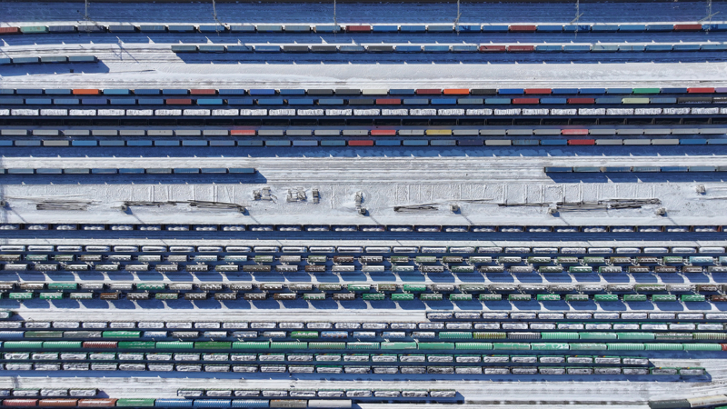 2月26日,满载货色的回程中欧班列驶入中国铁路哈尔滨局集团有限公司绥芬河站。\n 新华社发(曲艺伟摄)