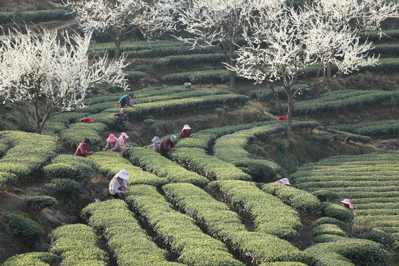 2月26日,茶农在四川省眉山市洪雅县止戈镇青杠坪村万亩生态茶园采摘春茶。\n 新华社发(姚永亮摄)