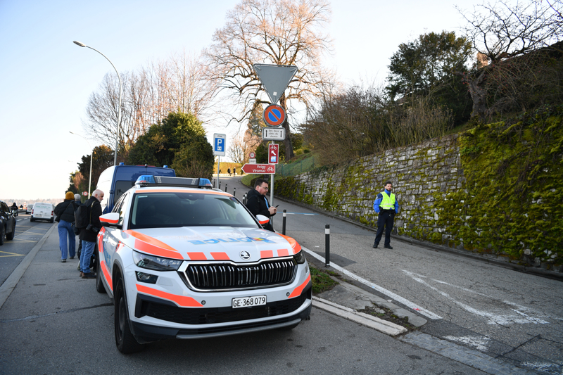2月26日,瑞士日内瓦阿曼驻日内瓦社叮属表机构隔壁的警车。 新华社记者 连漪 摄