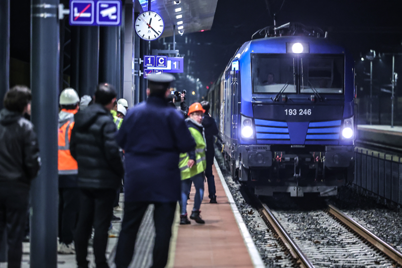 2月27日,匈牙利布达佩斯,一列货运列车驶入匈塞铁路匈牙利段绍罗克沙尔火车站。\n 新华社发(鲍洛格·达维德摄)