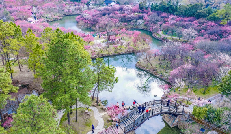 2月25日,搭客在江苏扬州瘦西湖惬心区赏梅游玩。\n 新华社发(周社根摄)
