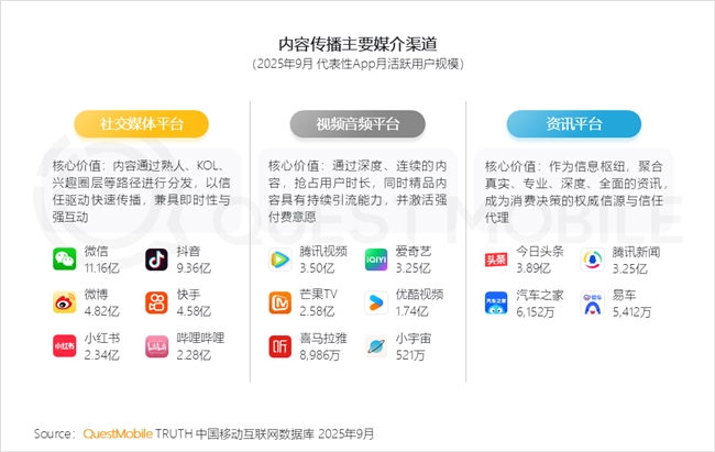 3、社交媒体、音视频及资讯平台已成为内容传播的主阵地,其差异化价值日益凸显3.1 不同内容媒介凭借其独有特性,塑造差异化的传播价值