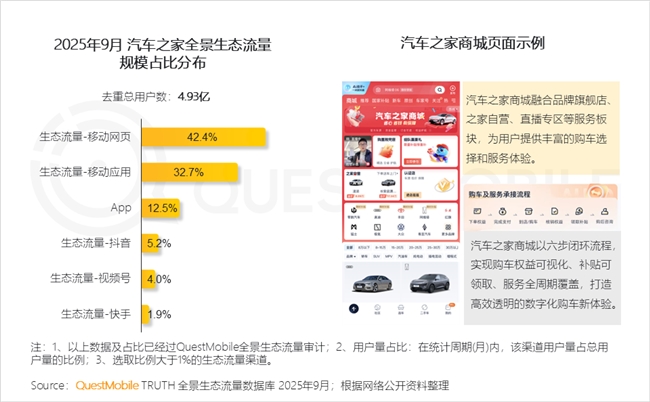 2.3 线上:汽车之家拥有近5亿的全景生态流量,通过品牌旗舰店、自营店及创新的直播与内容生态,促进用户从留资到直接下定,提升转化效率