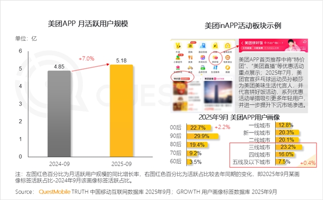 3.6 美团采用分层策略巩固外卖市场:通过“拼好饭”和“特价团”等产品线吸引性价比用户,同时以品质外卖服务争夺高端用户心智