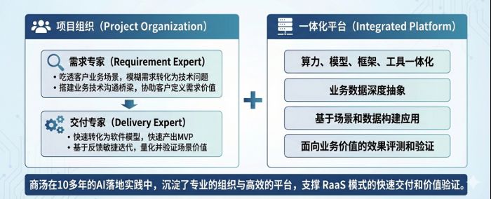 “无论是在早期 CV 时代,还是在今天的大模型时代,客户的判断标准始终只有一个——有没有明确的收益。”杨松表示,正是在这一背景下,商汤大装置逐步明确了“结果即服务(Result as a Service,RaaS)”的落地思路,即以业务结果作为最终交付物,而非模型或算法本身。