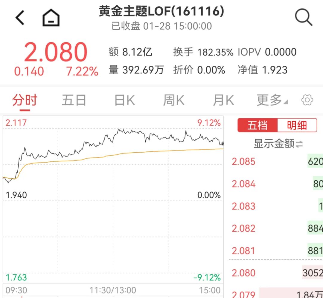 国投白银LOF涨停,成交额逾28亿元,本月累计涨幅近112%。易方达黄金主题LOF一度涨超9%,目前涨幅缩小至7%,越大配资服务成交额逾8亿元。