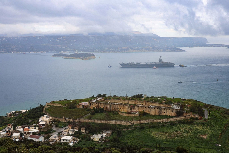 “福特”号航母抵达希腊克里特岛苏达湾舟师基地。