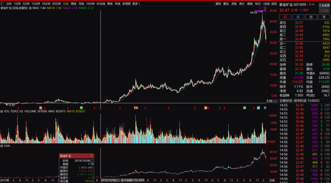 行情软件剖析,2019年四季度于今,紫金矿业股价复权涨幅高达1700%。其中,越大配资服务2025年大幅拉升,以前股价复权涨幅高达136%。