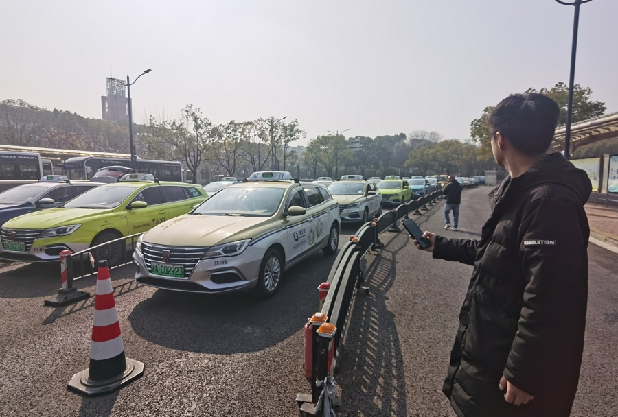 大年头二上昼,上海南站南广场出租车候客区时时响起“嗒嗒”的声息。